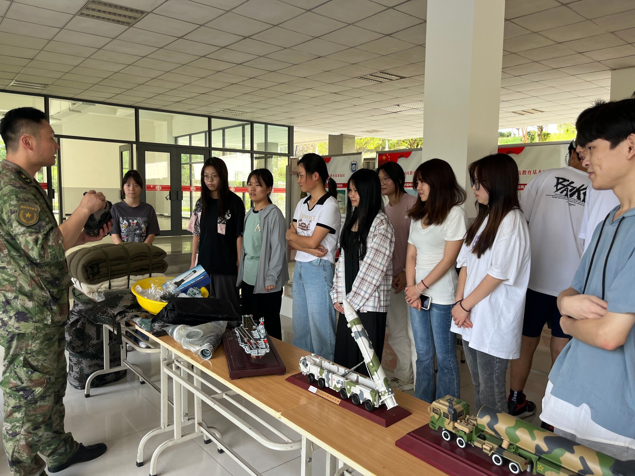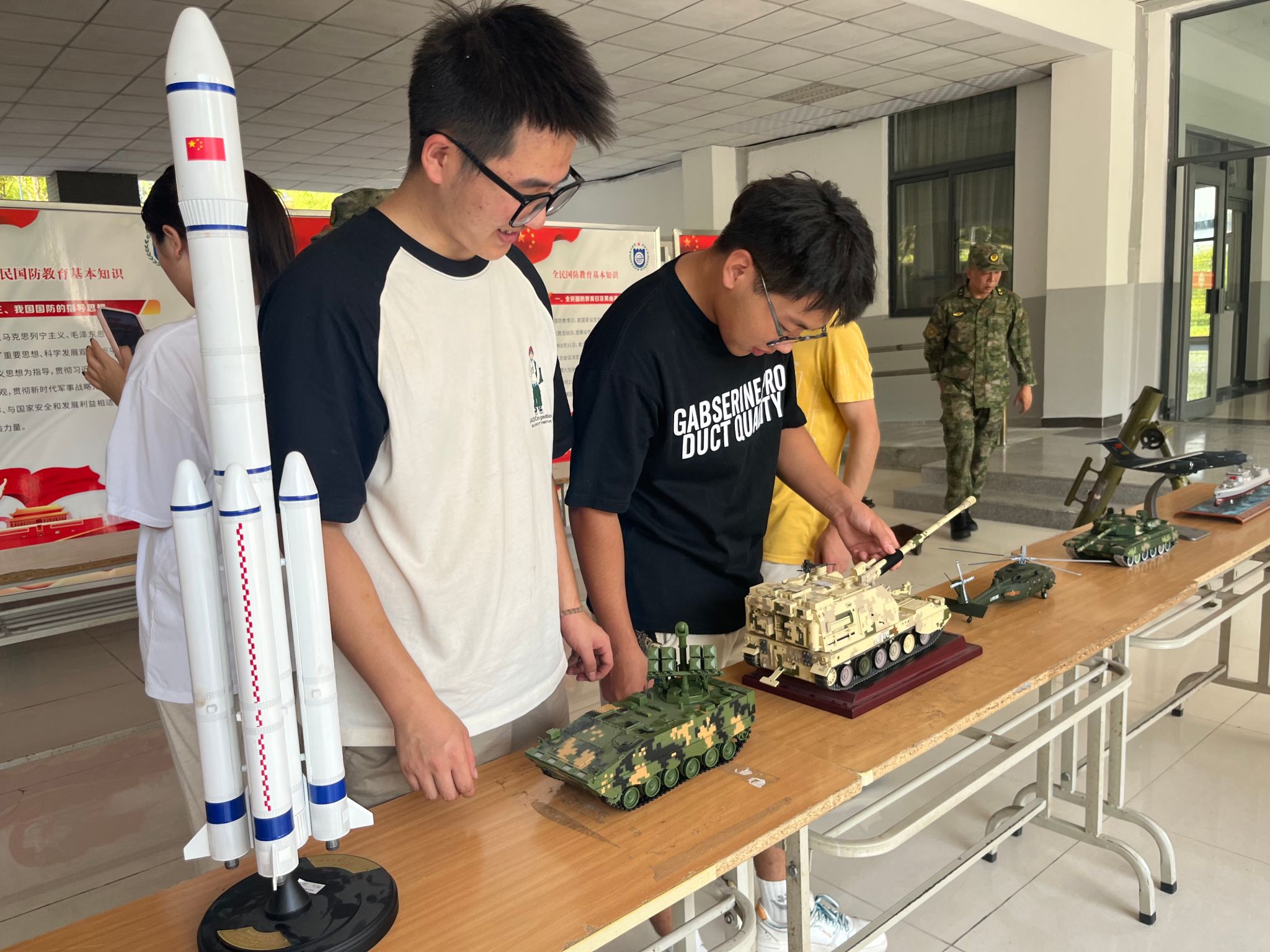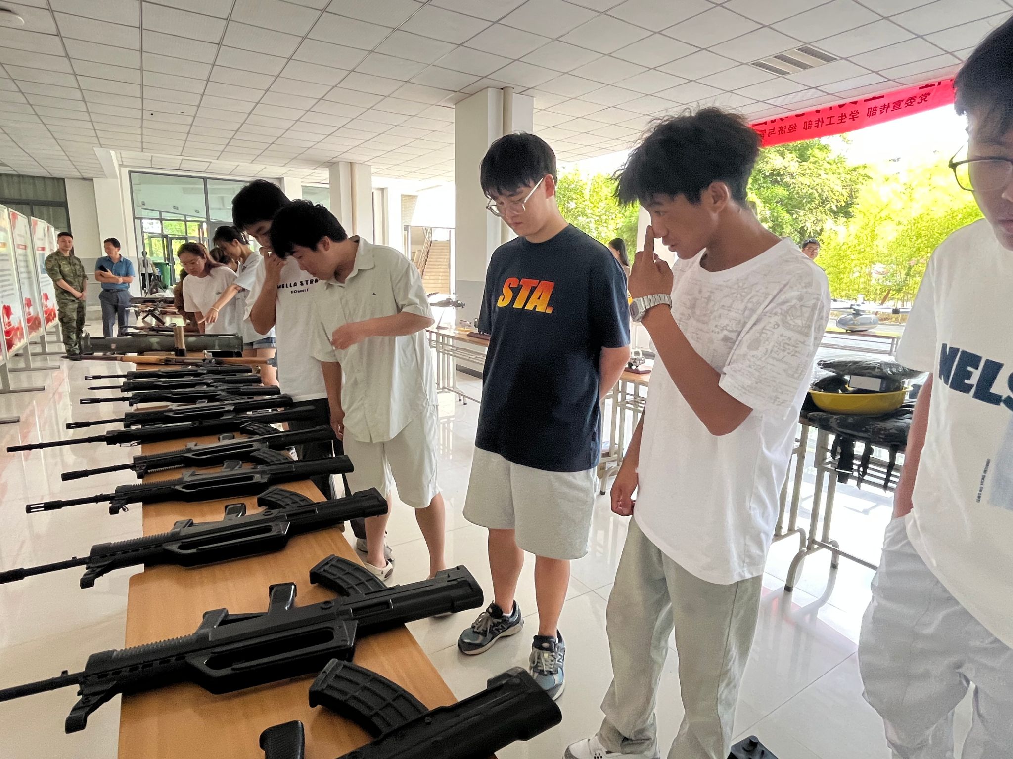 活动现场,近百面国防教育宣传展板向师生展示了我国国防军队建设取得的辉煌成就及国家最新征兵政策。武器装备模型展示,使同学们深入了解各种国防兵器,对武器枪支感兴趣的同学在讲解员的指导下拿起枪械模型,体验了一回持枪瞄准的感觉。无人机展示环节,将现代科技、科学家精神与国防教育融为一体,令学子们耳目一新、深受触动,活动在校园内营造了报效祖国、爱党拥军的良好氛围,进一步激发了广大师生的爱国主义情感。