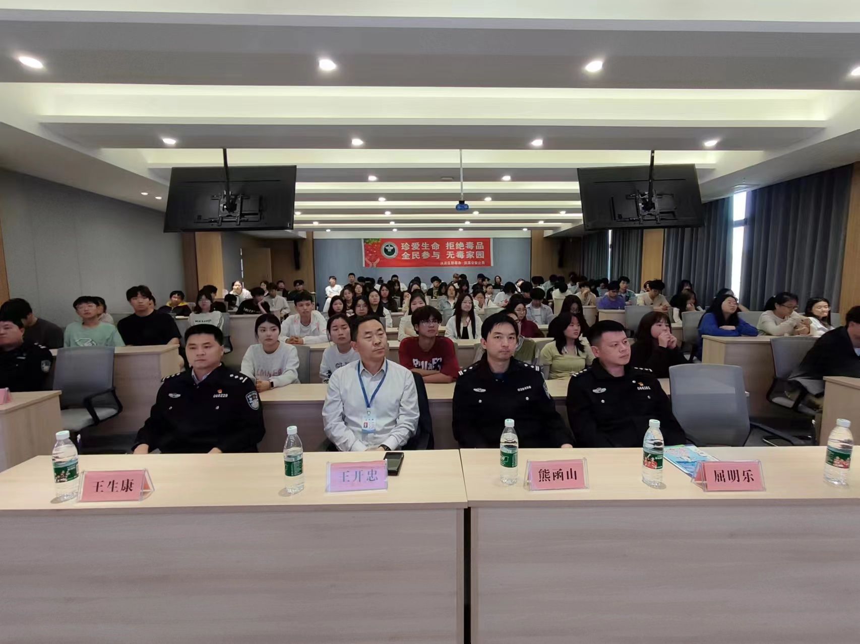 讲座中,黄保运大队长围绕“珍爱生命,远离毒品”主题,以虎门销烟为引入点,重点围绕新型毒品特点和种类,以案说法,讲述了的毒品的危害和违法犯罪的后果,引导广大师生珍爱生命,远离毒品。接着,保卫处王处长用幽默的语言与大家互动,调动同学们的积极性,通过大量案例,结合多年的校园安全教育经验和专业知识,重点围绕交通安全、网络安全、传染病预防、打架纠纷、国防安全等方面,向在场的同学们阐述了安全教育的重要性。他强调,安全意识的培养是每个人成长的必备素质,也是每个人无时无刻所要关注的问题。